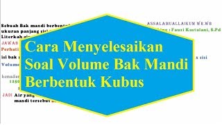 Cara Menyelesaikan Soal Volume Bak Mandi Berbentuk Kubus Cara Menyelesaikan Soal Volume Bak Mandi Berbentuk Kubus Jika video ini bisa membantu teman-teman. Silahkan di share dan di like agar teman-teman ... Watch Now